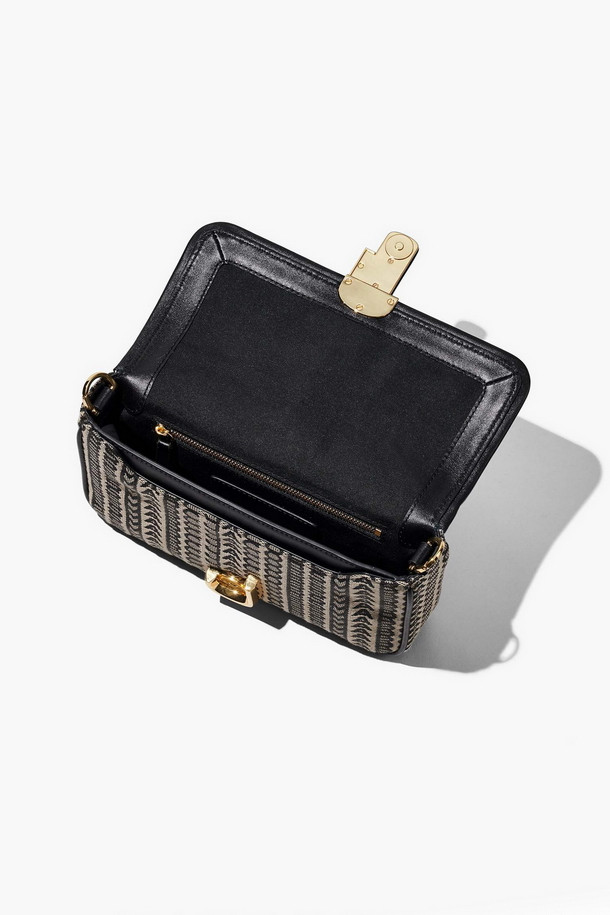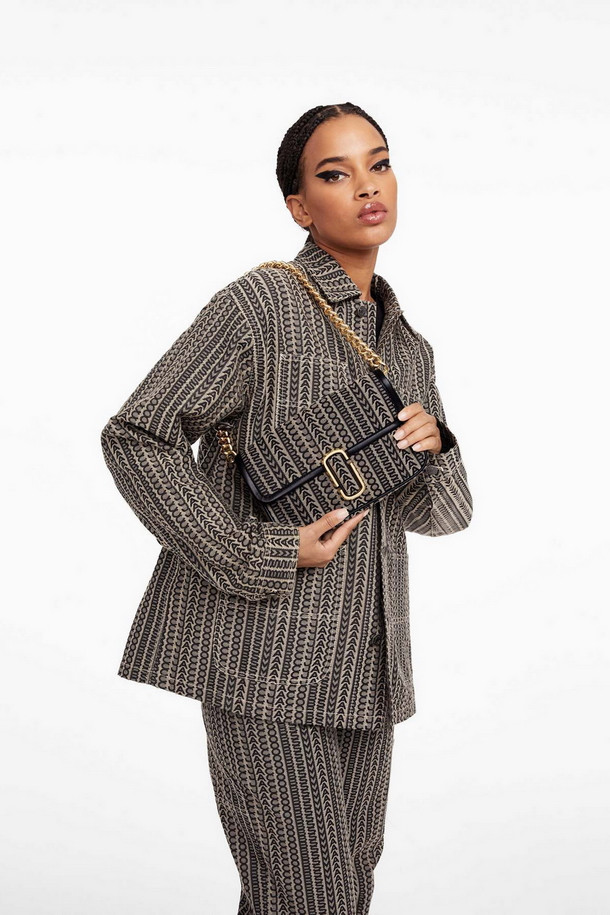 ‘The Monogram J Marc’ shoulder bag is part of the New Season collection from Marc Jacobs. This day to night style is crafted from premium jacquard in monogram design with polished silver tone hardware. The secure magnetic snap front flap fastening reveals the main compartment as well as handy inner zip and slot pockets, exterior slot pocket also features. Carry by either of the straps or use as a classic clutch. Classic double ‘J’ logo adds detail. Signature Marc Jacobs branding is seen throughout.